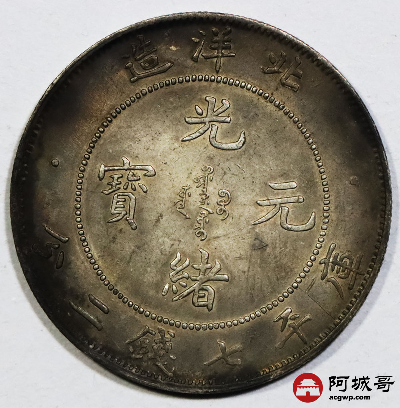 Lot:1779 1907年光绪三十三年北洋造光绪元宝库平七钱二分银币一枚 ,原光五彩未流通品相