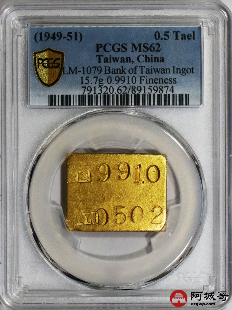 Lot:1514 1949-1951年台湾银行“市两0.499”纪重金片一枚,15.6g PCGS MS61评级编号:89159874