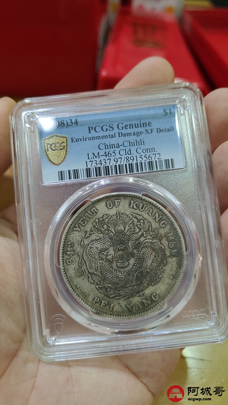 Lot:1661 1908光绪三十四年北洋造光绪元宝库平七钱二分银币一枚,原味PCGS XF97评级编号:89155672