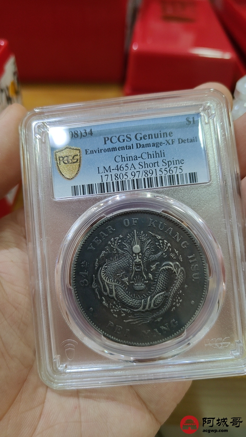 Lot:1654 1908光绪三十四年北洋造光绪元宝库平七钱二分银币一枚,短尾版,黑美人PCGS XF97评级编号:89155675