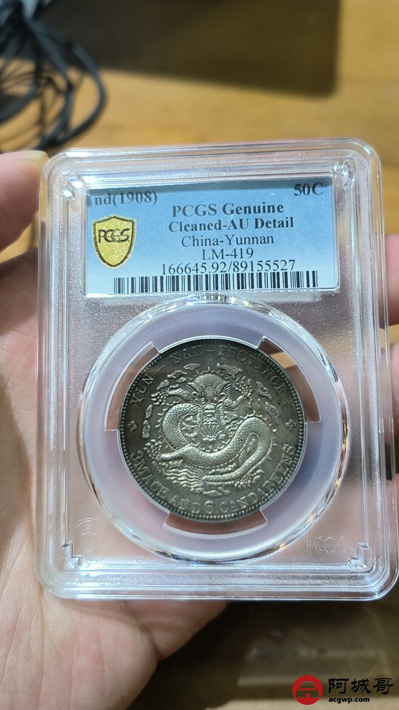 Lot:1557 1908年云南省造光绪元宝库平三钱六分银币一枚,原味五彩底板 PCGS AU92评级编号:89155527
