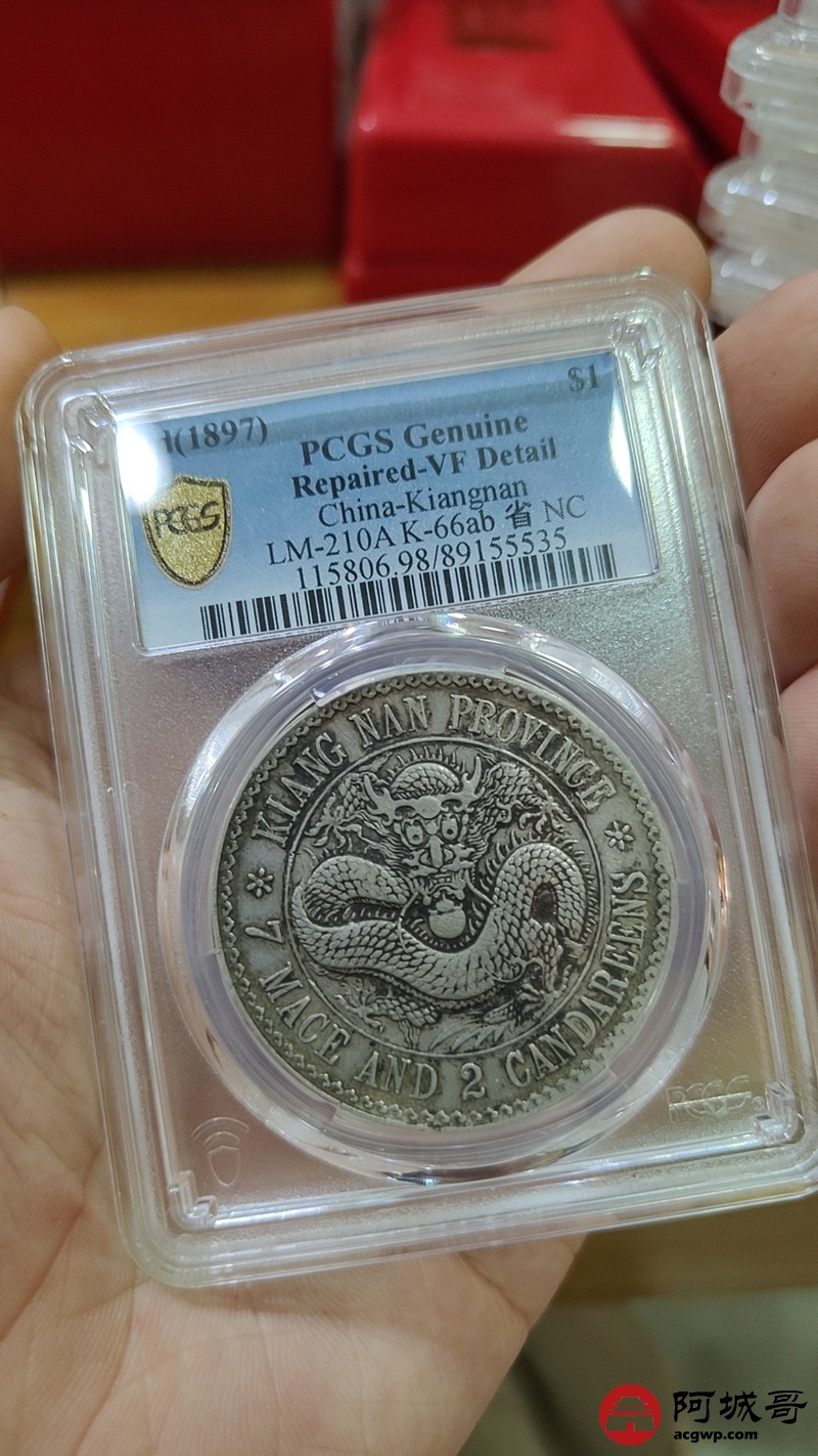 Lot:1341 1897年江南省造光绪元宝库平七钱二分银币一枚,原味 PCGS VF98评级编号:89155535