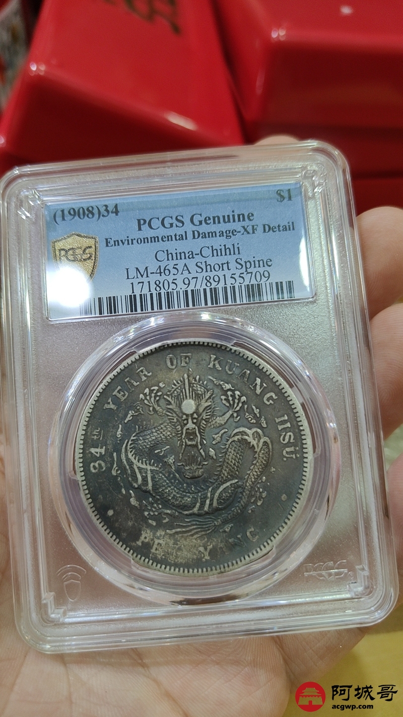 Lot:1741 1908光绪三十四年北洋造光绪元宝库平七钱二分银币一枚,短尾版,酱彩 PCGS XF 97评级编号:89155709