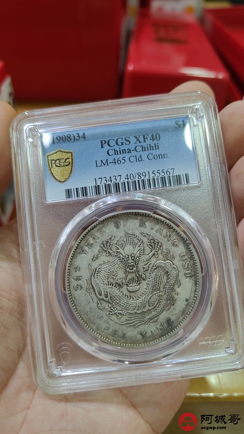 Lot:1651 1908光绪三十四年北洋造光绪元宝库平七钱二分银币一枚,原味 PCGS XF40评级编号:89155567
