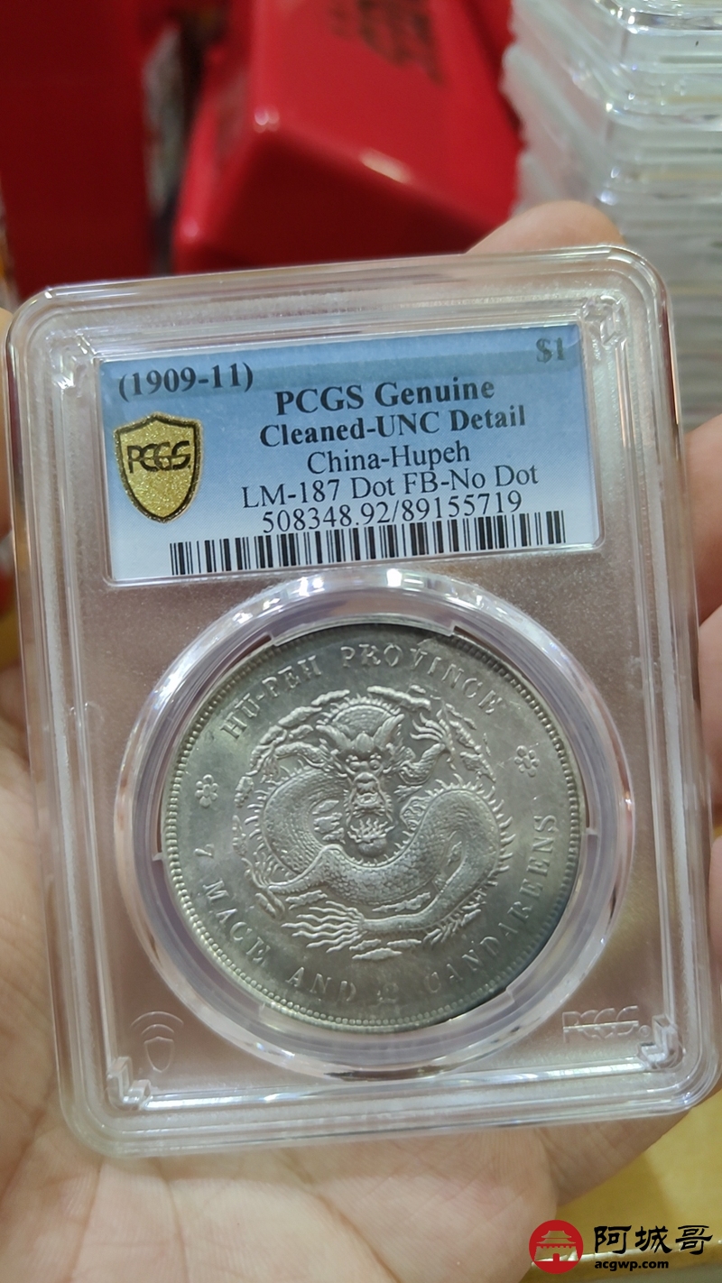 Lot:1327 1909-11年湖北省造宣统元宝库平七钱二分银币一枚,原色光,未使用 PCGS UN92评级编号:89155719
