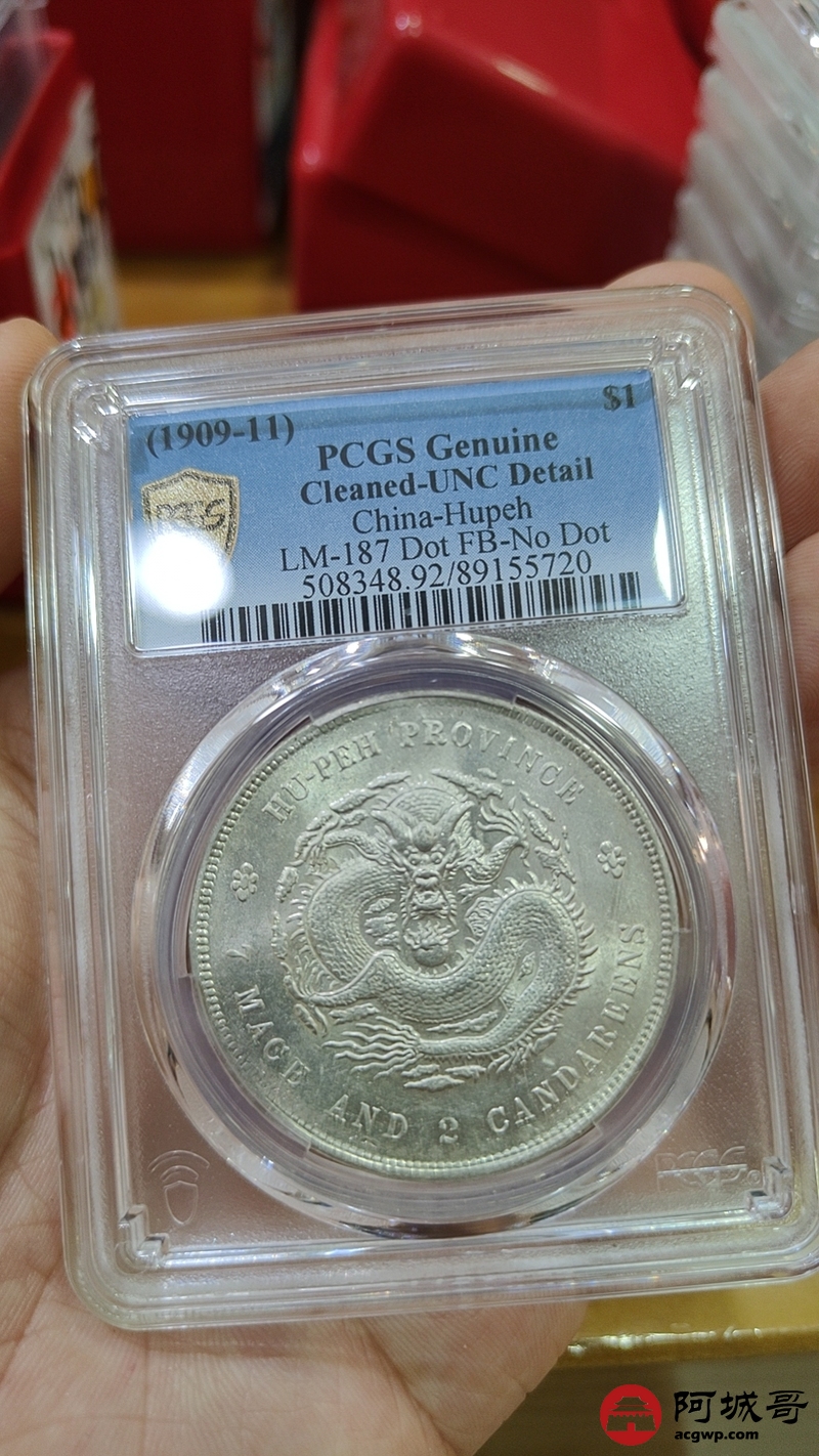 Lot:1326 1909-11年湖北省造宣统元宝库平七钱二分银币一枚,原色光,未使用 PCGS UNC92评级编号:89155720