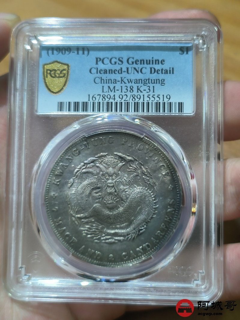 Lot:1315 1909-11年广东省造宣统元宝库平七钱二分银币一枚,原光淡彩底板,未使用 PCGS UNC92评级编号:89155519