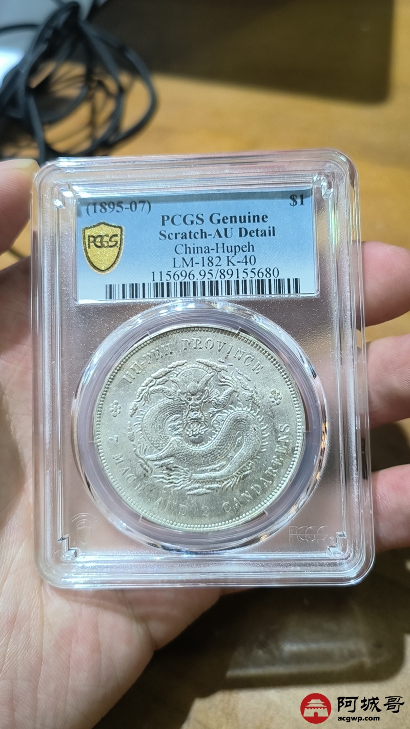 Lot:1322 1895-07年湖北省造光绪元宝库平七钱二分银币一枚,PCGS AU95评级编号89155680