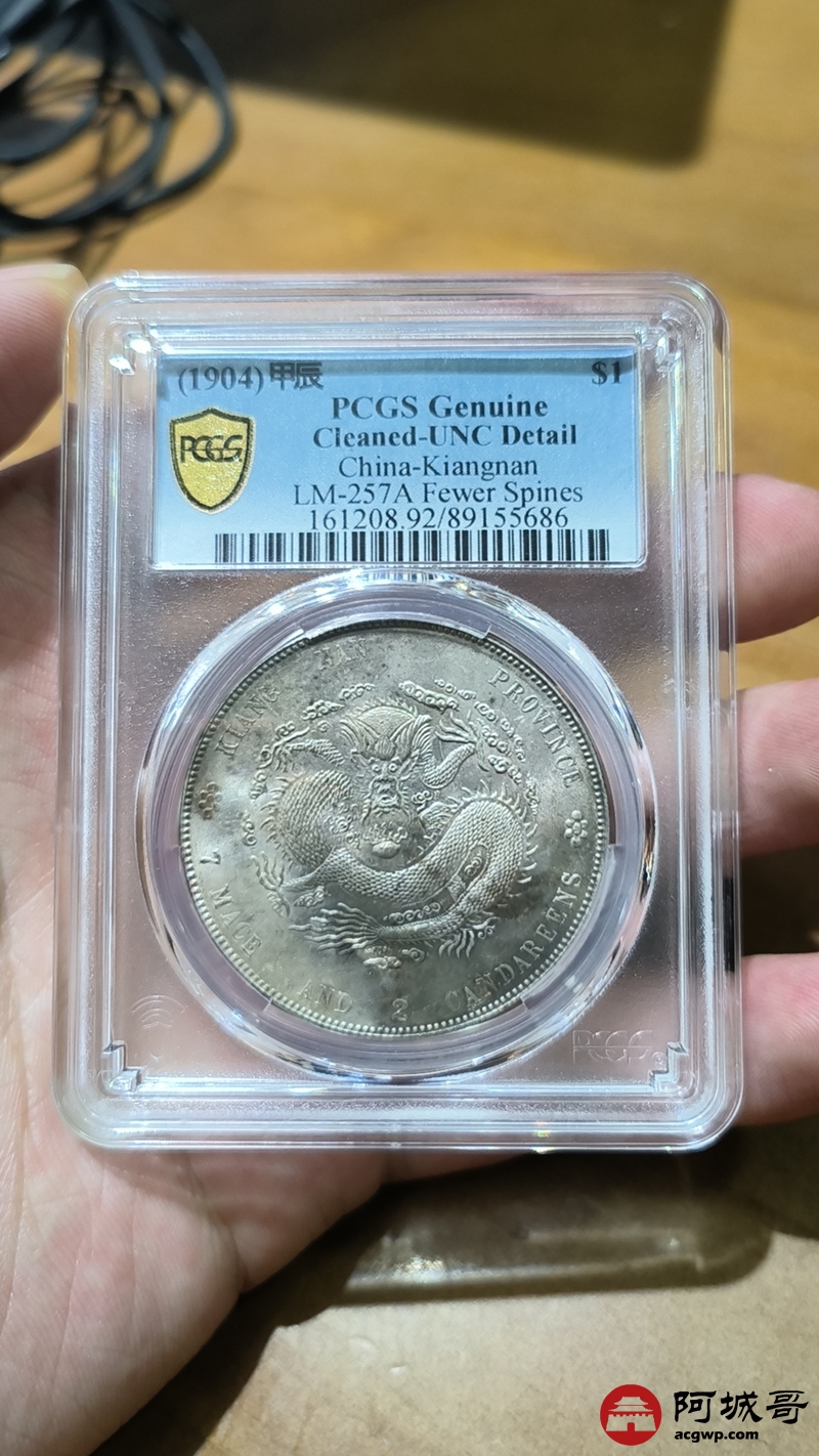 Lot:1356 1904甲辰年江南省造光绪元宝库平七钱二分银币一枚,原色光,未使用 PCGS UNC92评级编号:89155686