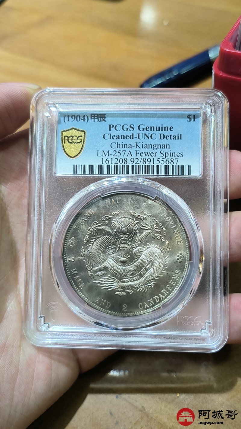 Lot:1358 1904甲辰年江南省造光绪元宝库平七钱二分银币一枚,彩光底板,未使用 PCGS UNC92评级编号:89155687