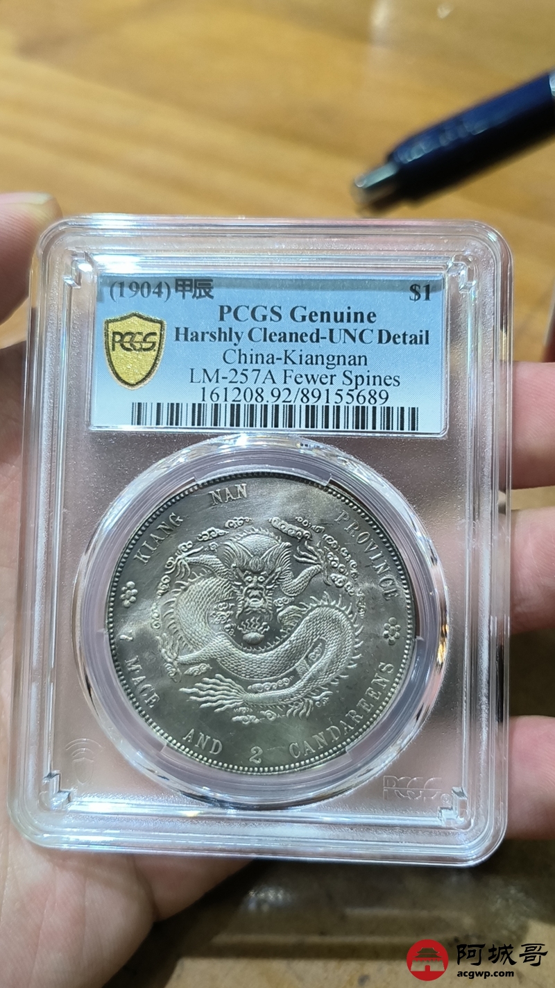 Lot:1359 1904甲辰年江南省造光绪元宝库平七钱二分银币一枚,彩光底板,未使用 PCGS UNC92评级编号:89155689