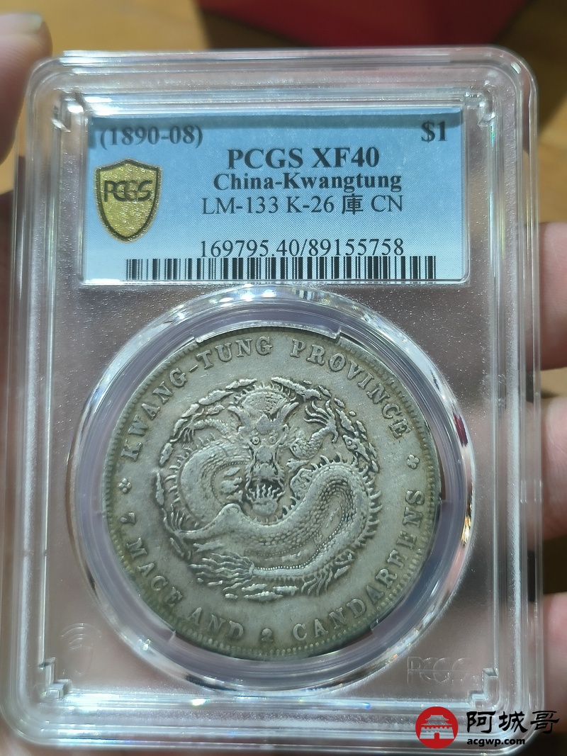 Lot:1785 1890-08广东省造光绪元宝库平七钱二分银币一枚,原味PCGS XF40评级编号:89155758