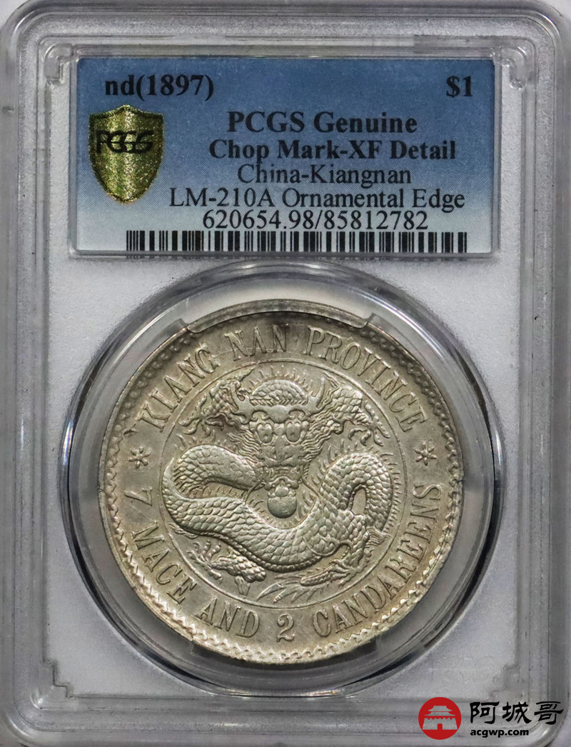 Lot:1350 1897年江南省造光绪元宝库平七钱二分银币一枚 PCGS XF98评级编号:85812782