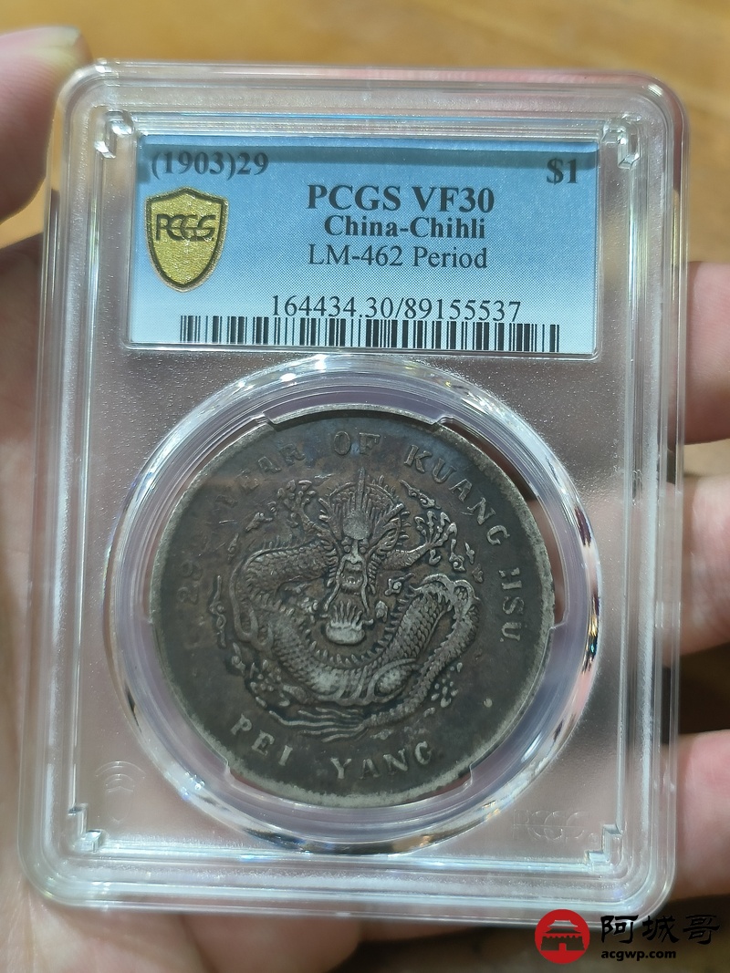 Lot:1709 1903光绪二十九年北洋造光绪元宝库平七钱二分银币一枚,酱彩包浆 PCGS VF30评级编号:89155537