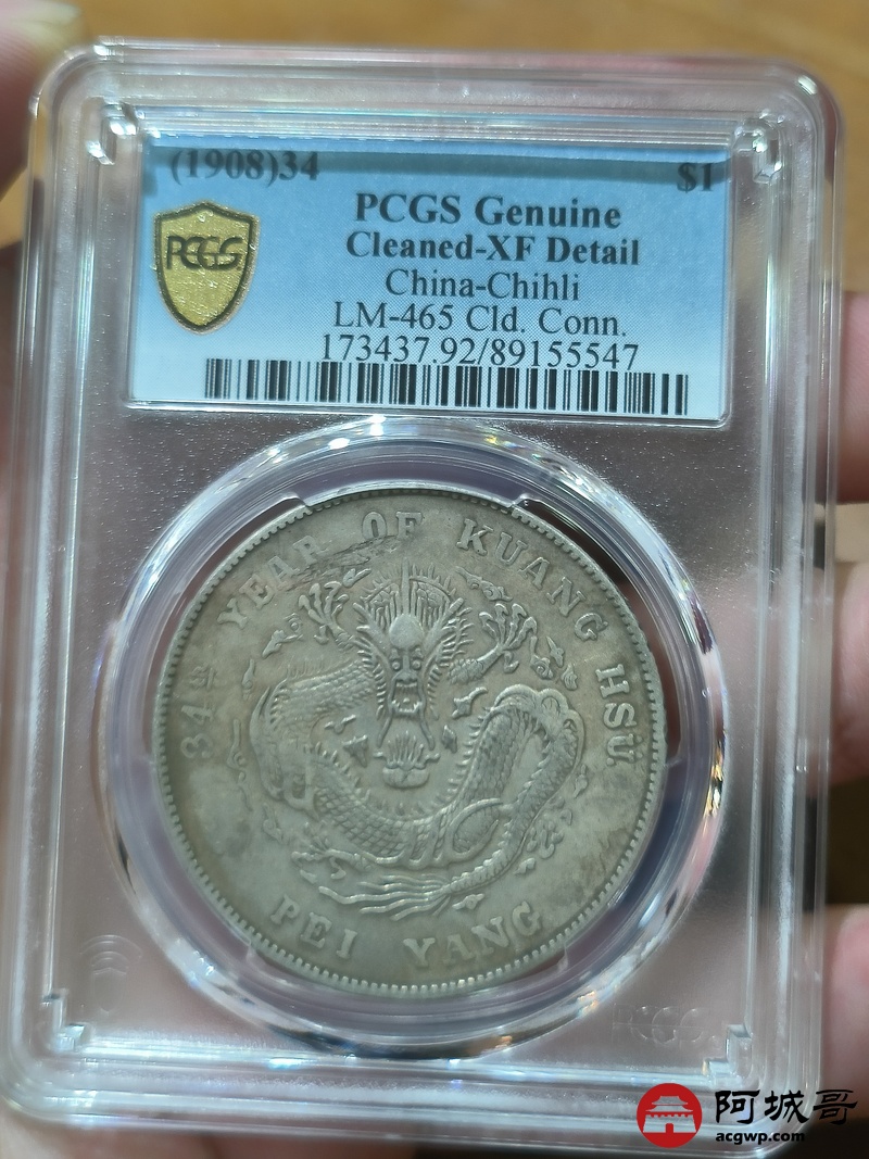 Lot:1718 1908光绪三十四年北洋造光绪元宝库平七钱二分银币一枚,原味 PCGS XF92评级编号:89155547
