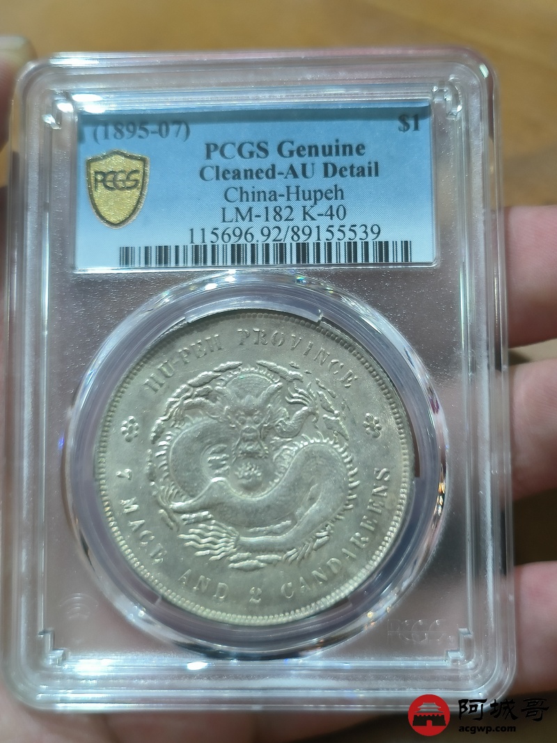 Lot:1323 1895-07湖北省造光绪元宝库平七钱二分银币一枚,PCGS AU92评级编号:89155539