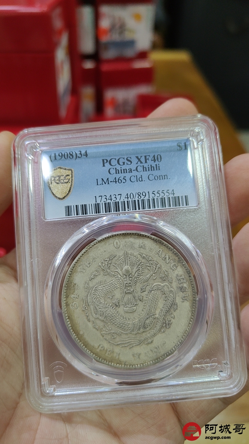 Lot:1617 1908光绪三十四年北洋造光绪元宝库平七钱二分银币一枚,原味 PCGS XF40评级编号:89155554