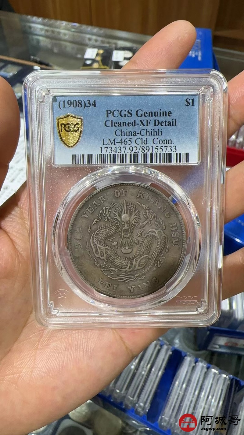Lot:1591 1908光绪三十四年北洋造光绪元宝库平七钱二分银币一枚,原味 PCGS XF92评级编号:89155733