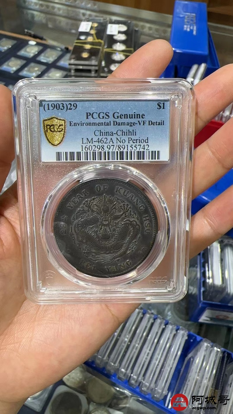 Lot:1593 1903光绪二十九年北洋造光绪元宝库平七钱二分银币一枚,原味黑美人 PCGS VF97评级编号:89155742
