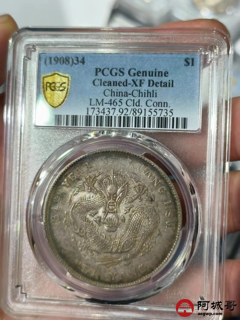 Lot:1588 1908光绪三十四年北洋造光绪元宝库平七钱二分银币一枚,原味 PCGS XF92评级编号:89155735
