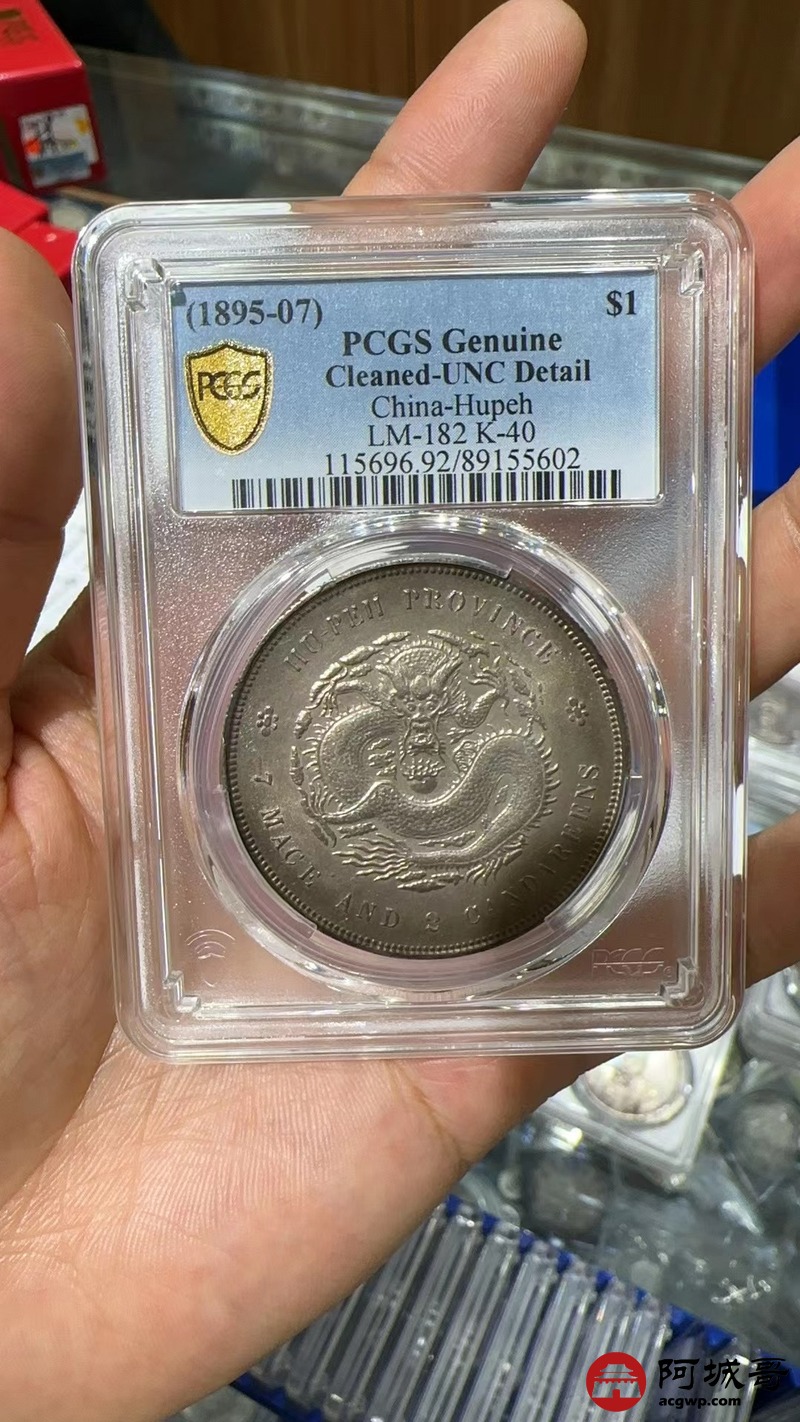 Lot:1335 1895-07年湖北省造光绪元宝库平七钱二分银币一枚,彩光底板,未使用 PCGS UNC92评级编号:89155602