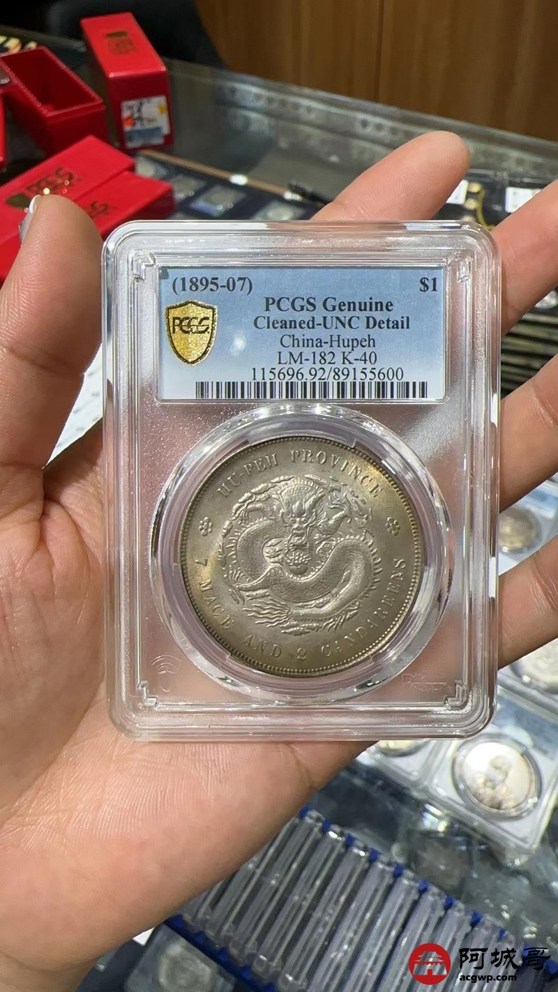 Lot:1336 1895-07年湖北省造光绪元宝库平七钱二分银币一枚,彩光底板,未使用 PCGS UNC92评级编号:89155600