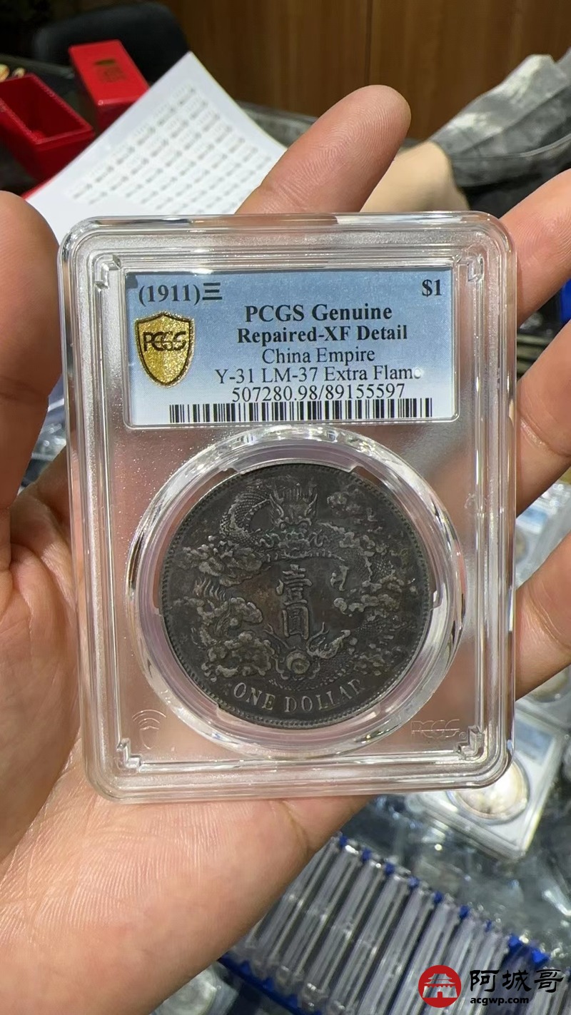 Lot:1820 1911大清宣统三年壹圆银币一枚,酱黑彩包浆 PCGS XF98评级编号:89155597