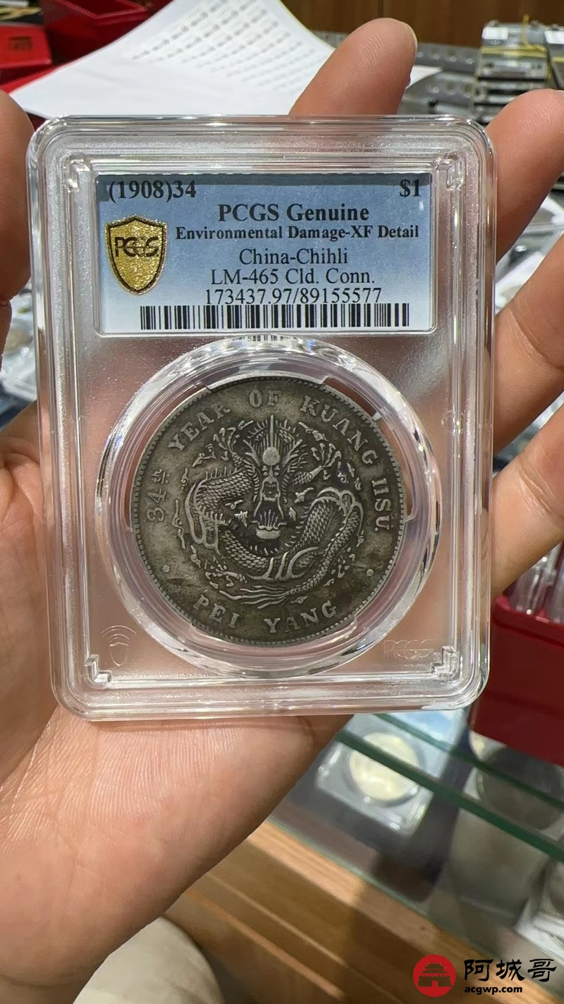 Lot:1698 1908光绪三十四年北洋造光绪元宝库平七钱二分银币一枚,原味PCGS XF97评级编号:89155577