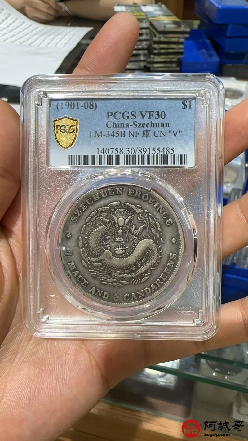 Lot:1422 1901-08年四川省造光绪元宝库平七钱二分银币一枚,原味 PCGS VF30评级编号:89155485