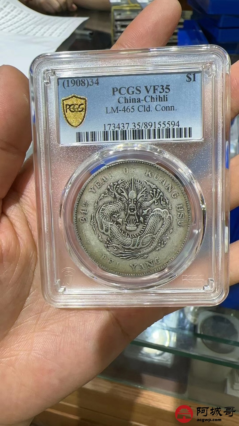 Lot:1702 1908光绪三十四年北洋造光绪元宝库平七钱二分银币一枚,原味 PCGS VF35评级编号:89155594