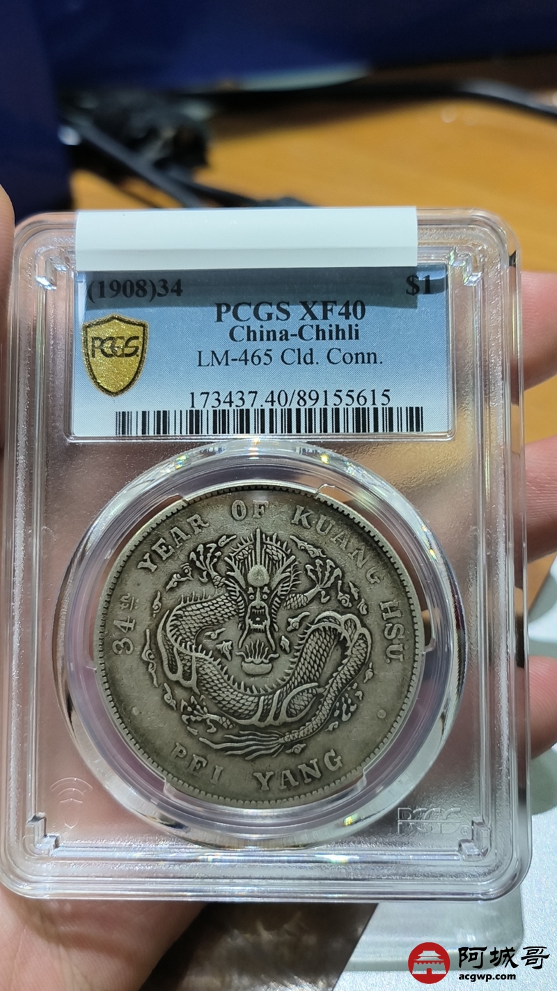 Lot:1743 1904光绪三十四年北洋造光绪元宝库平七钱二分银币一枚,原味 PCGS XF40评级编号:89155615