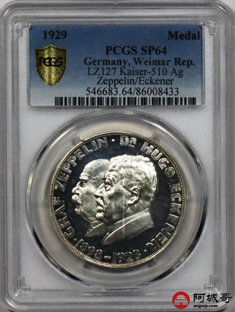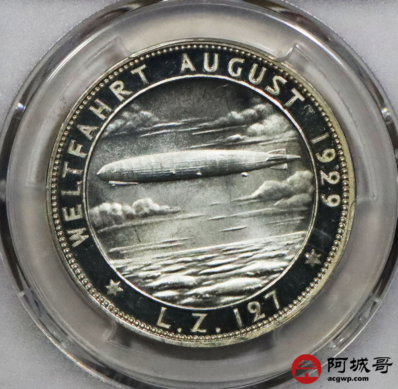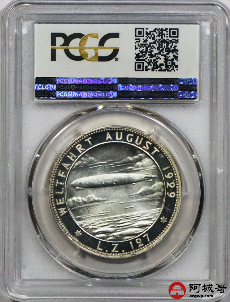 Lot:20 德国 齐柏林 1929年 飞行纪念银章 PCGS SP64