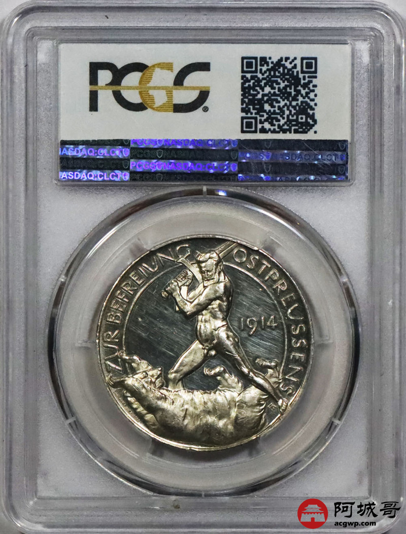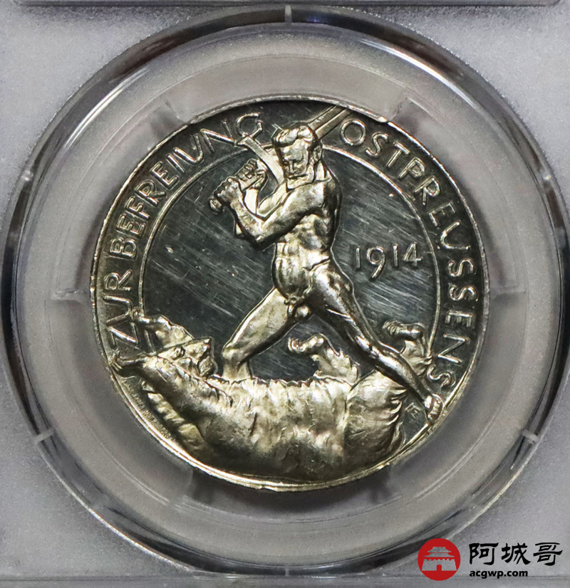 Lot:14 东德国1914 普鲁士 解放纪念银章 著名雕刻师 劳尔 作品 PCGS SP 61
