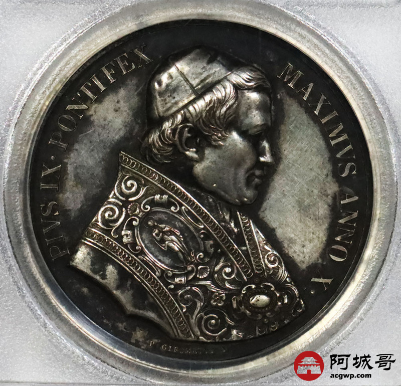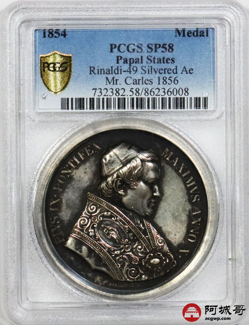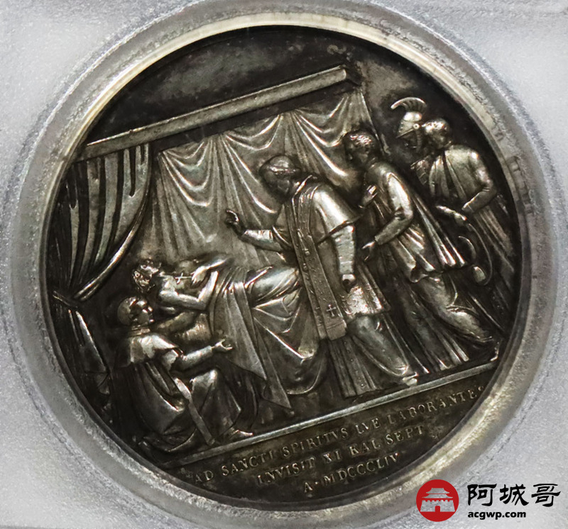Lot:18 1854 梵蒂冈 庇护九世 探望重病教徒 纪念银章 PCGS SP 58