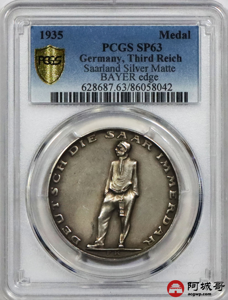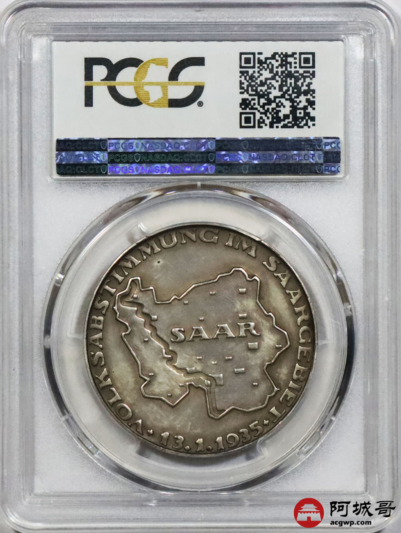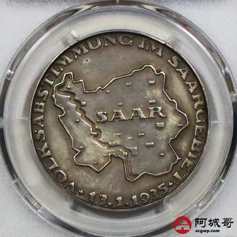 Lot:10 1935 德国 萨尔茨堡 全民公投纪念银章 PCGS SP 63