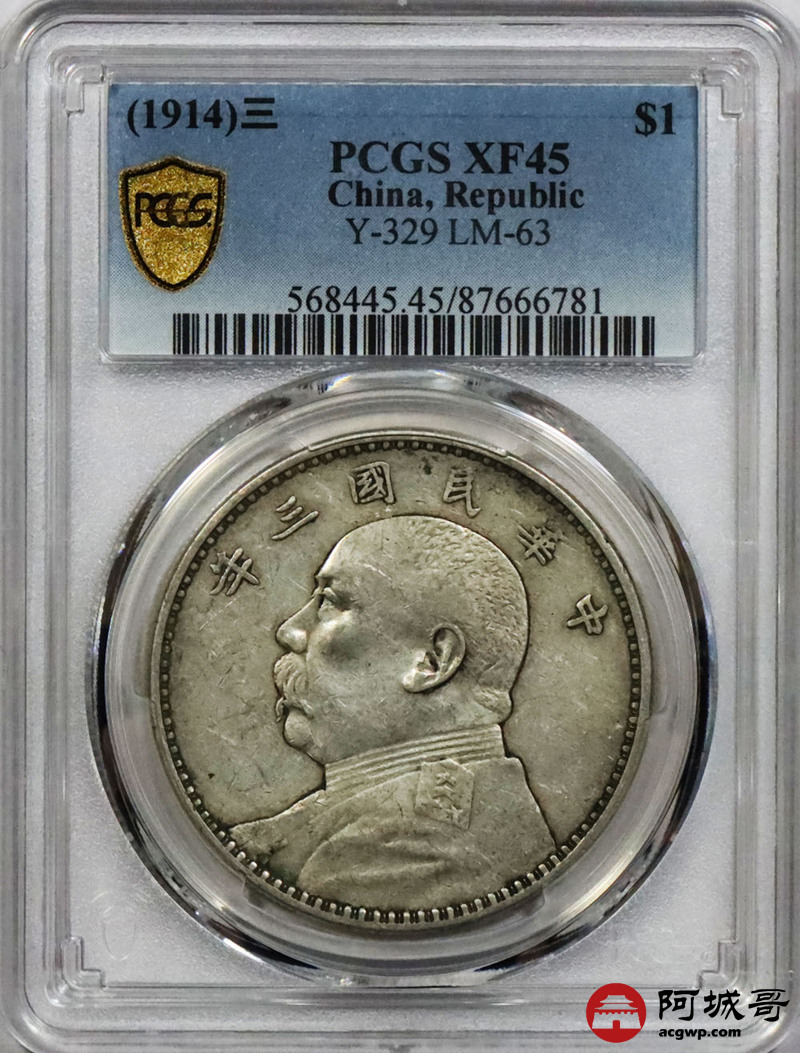 Lot:17 原味老包浆三年大头壹圆 PCGS XF45