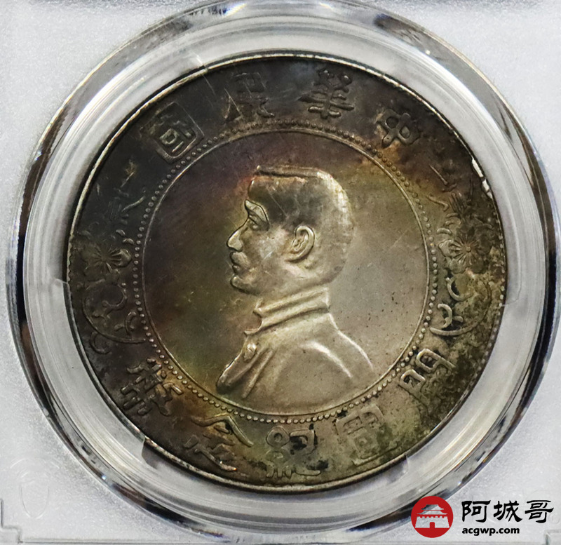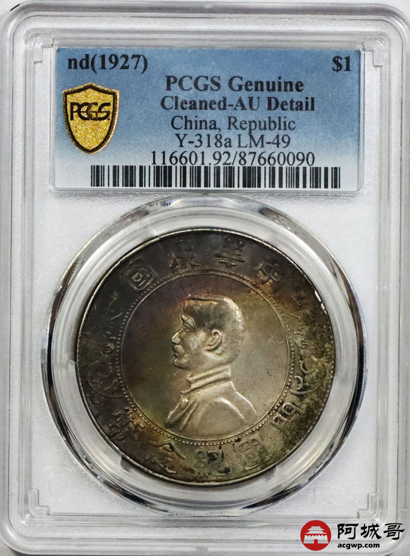 Lot:37 原味五彩底光 孙像小头壹圆 PCGS AU