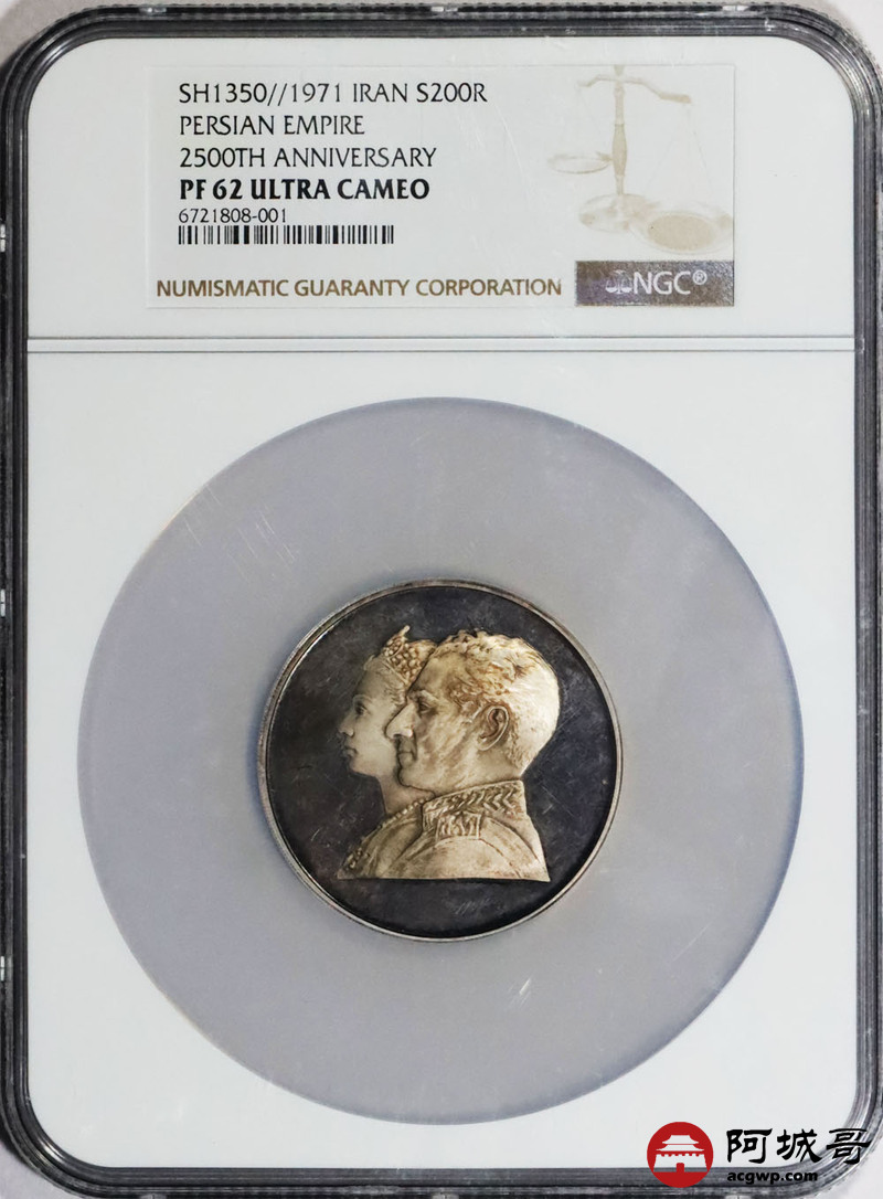 Lot:23 伊朗1971年波斯帝国2500年纪念大银币 NGC PF62UC