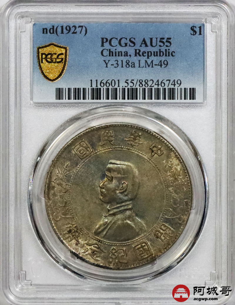Lot:11 五彩转光 孙像小头壹圆 PCGS AU55