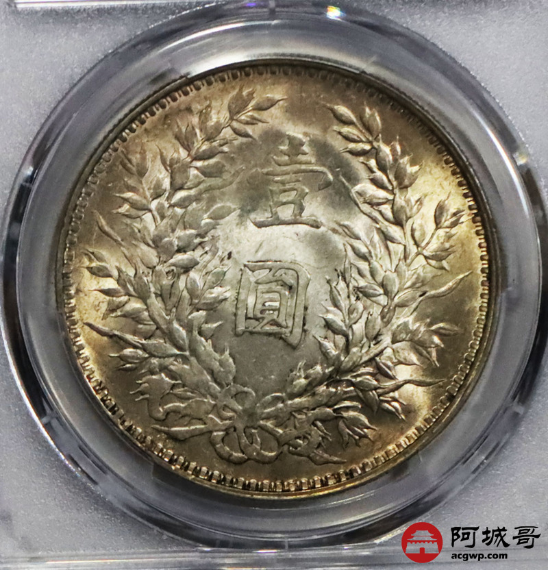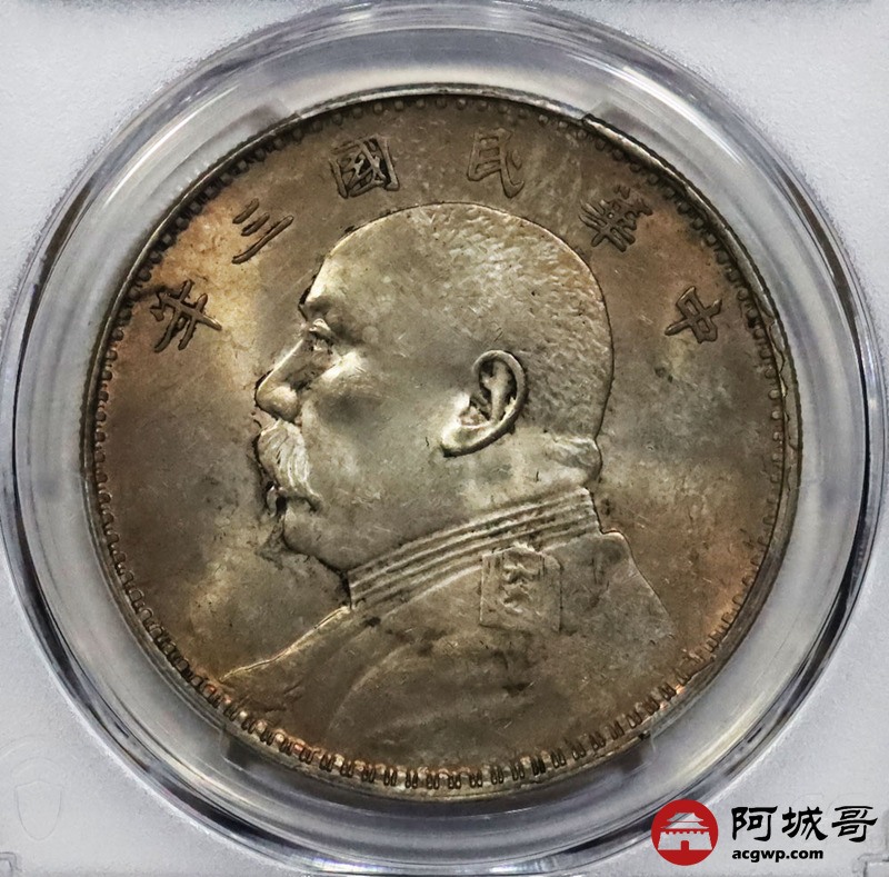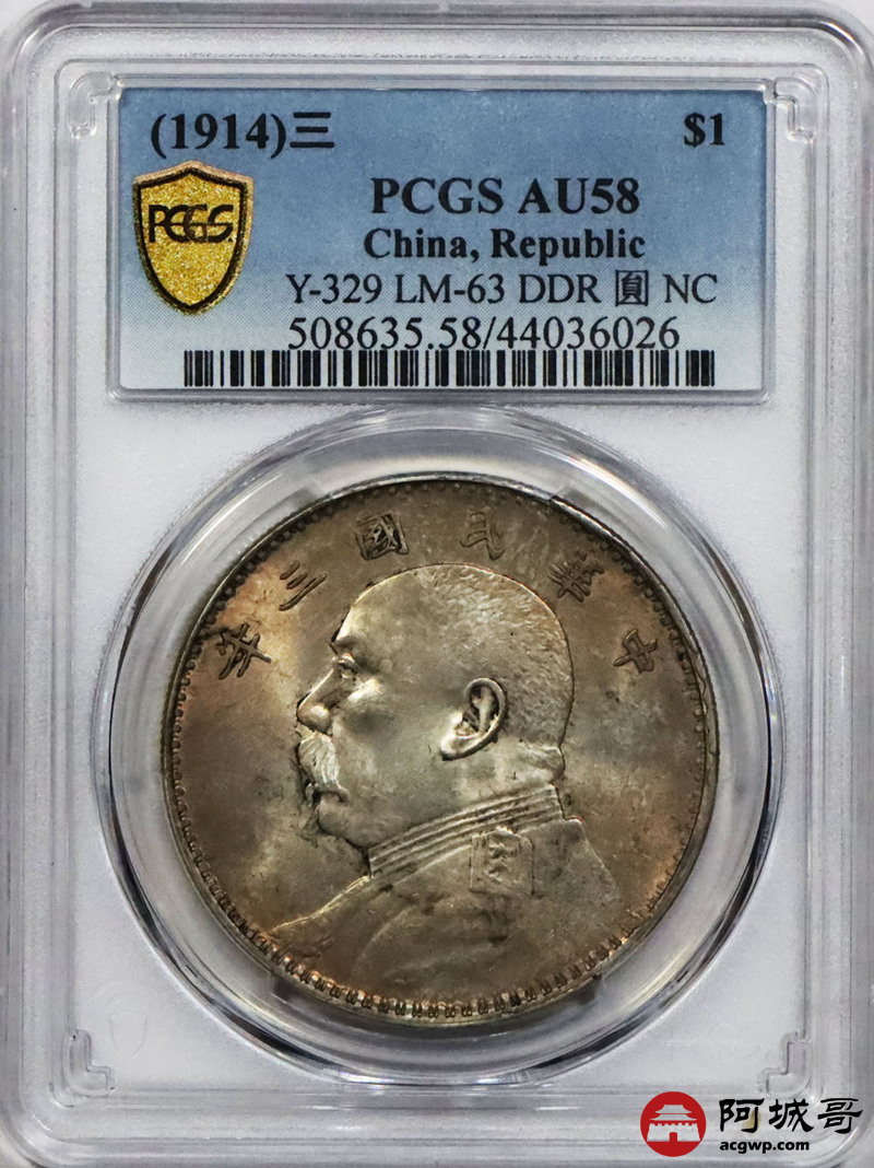 Lot:13 淡彩转光 三年大头壹圆 复打燕尾芒 PCGS AU58