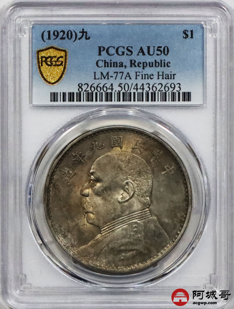 Lot:36 底光 淡彩包浆 九年精发壹圆 PCGS AU50