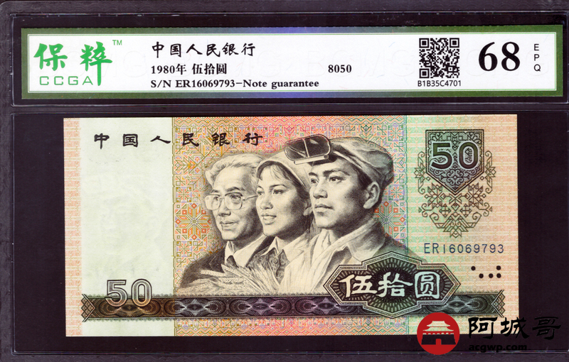 Lot:38 四版币王 8050 CCGA 68EPQ 好号无4