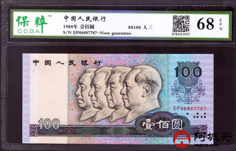 Lot:50 四版 80100人三号 CCGA 68EPQ 好号无4