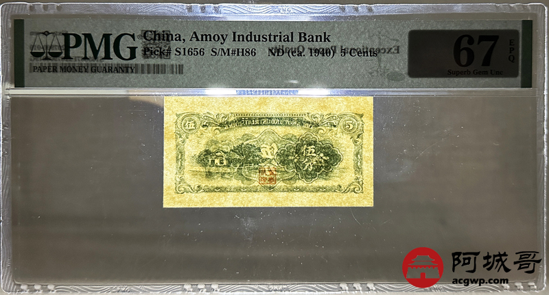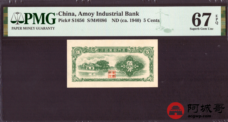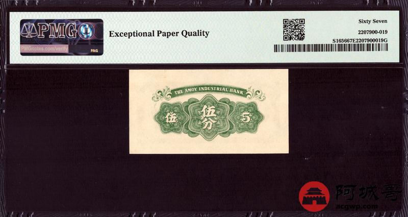 Lot:15 厦门劝业银行 伍分 (1940年) PMG 67EPQ