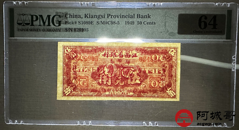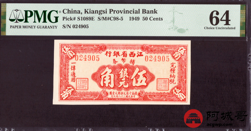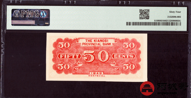 Lot:16 民国38年 江西省银行 伍角 PMG 64