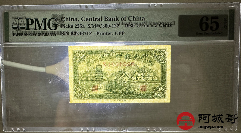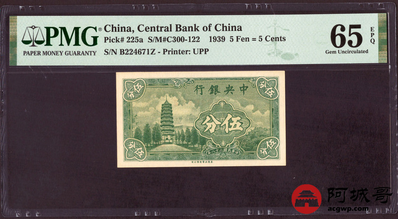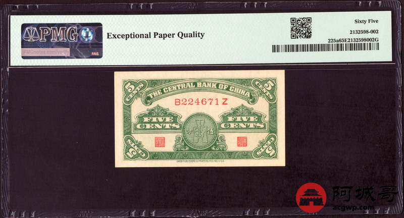 Lot:8 民国28年 中央银行 伍分 PMG 65EPQ