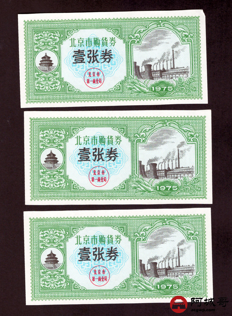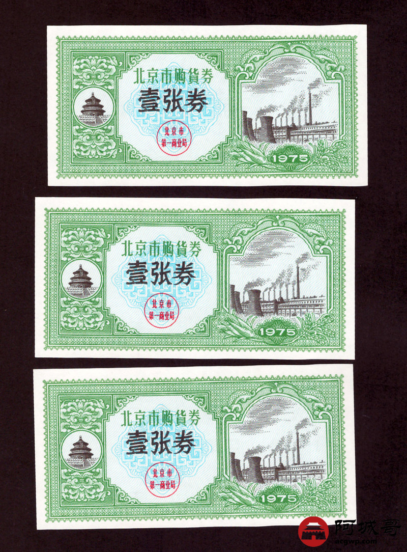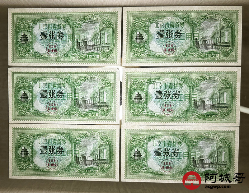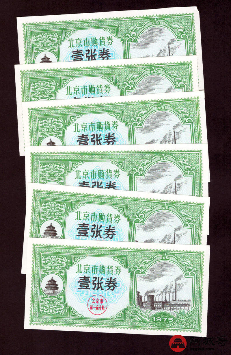Lot:49 1975年 北京市购货券 壹张券 6张一组 9至全新