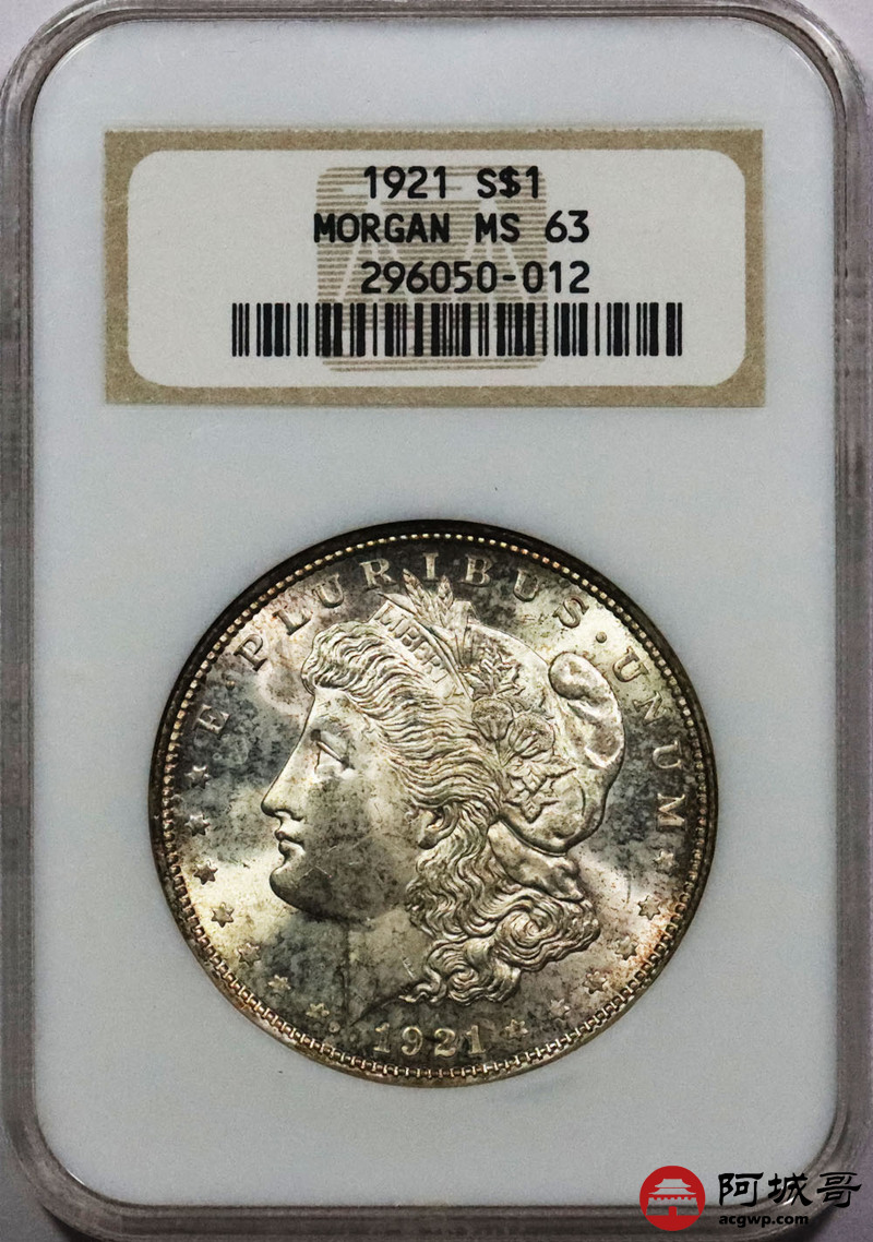 Lot:18 1921年环彩原光美国摩根壹圆 NGC MS63