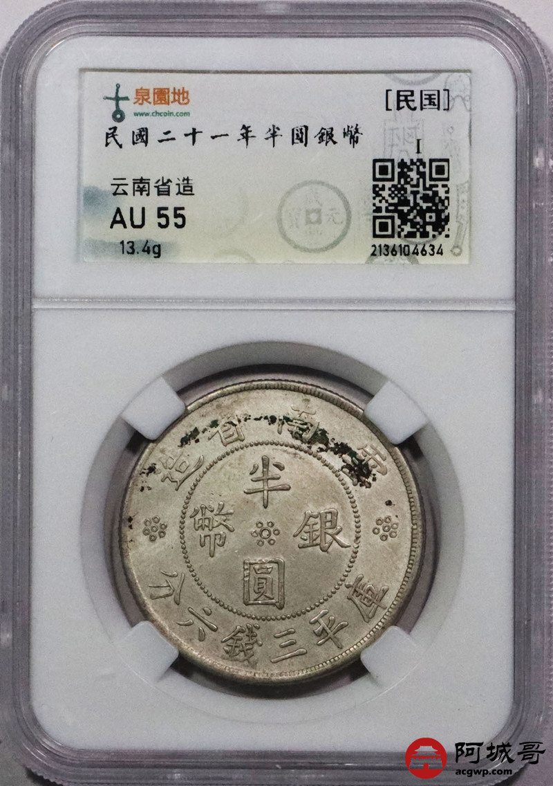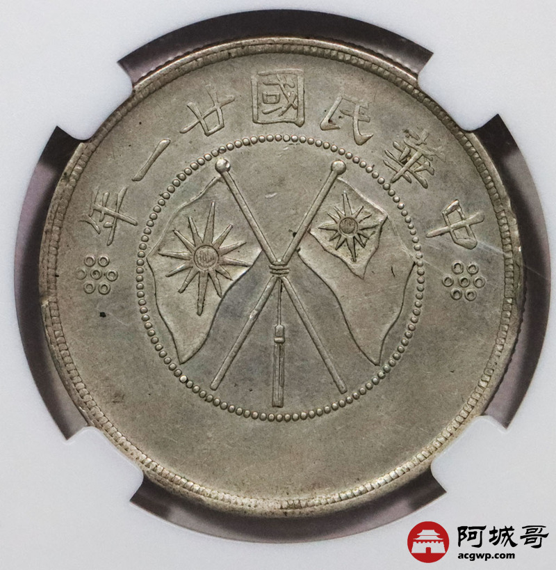 Lot:2 民国二十一年云南双旗半圆 古泉园地 AU55