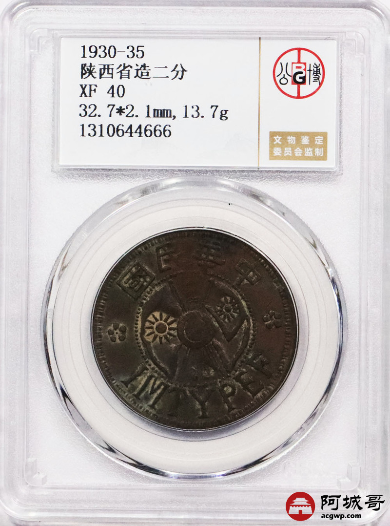 Lot:32 陕西省造二分 公博 XF40